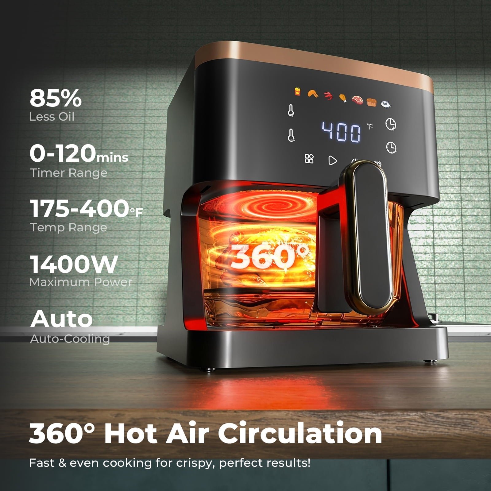 Our air fryer boasts a powerful 1400W output, delivering 360° circulating airflow. Using 85% less oil than traditional air fryers, this appliance is an absolute must-have for anyone committed to a healthy lifestyle.