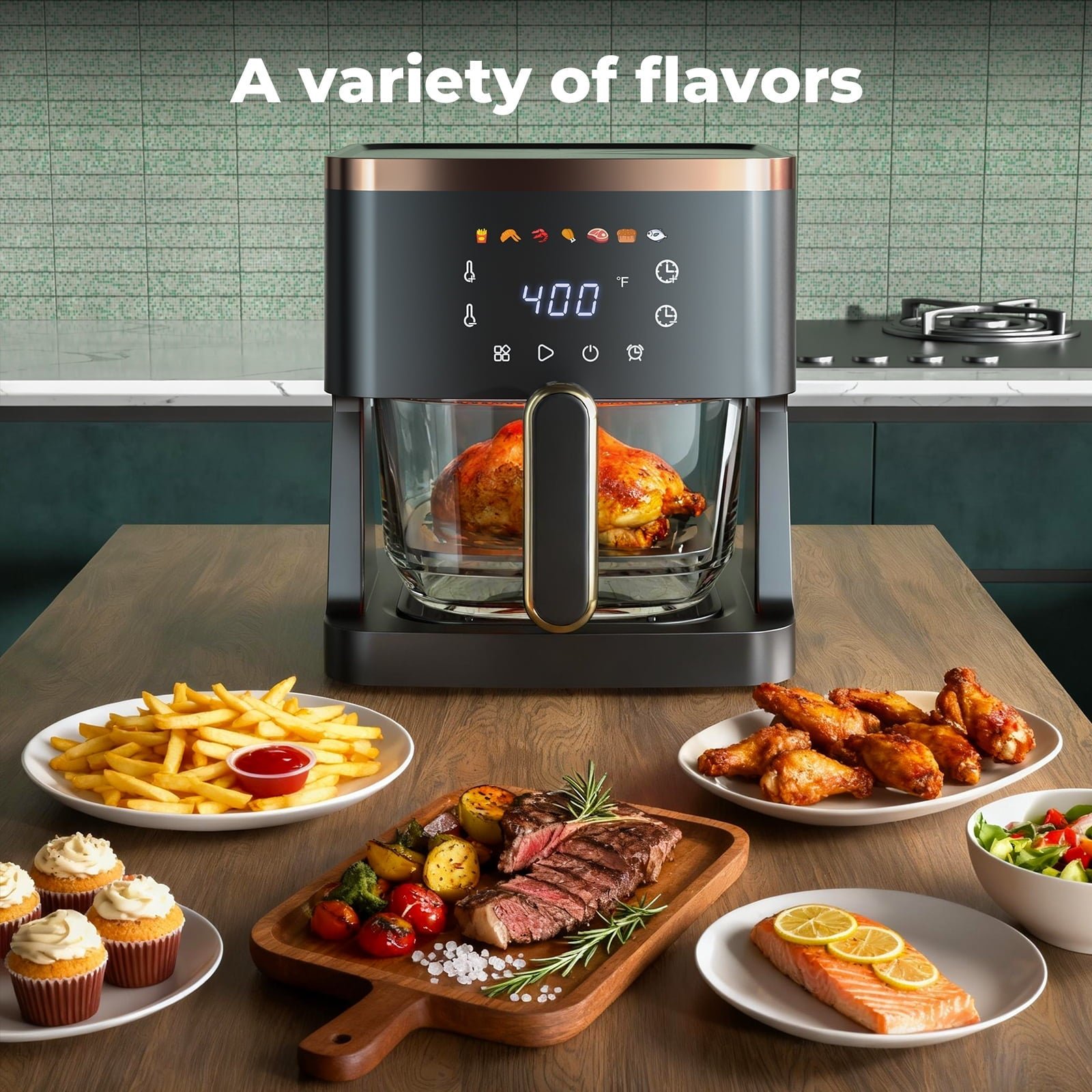 Shrimp, chicken wings, chicken legs, french fries, steak, bread, fish, and other delicacies—effortlessly achieve preset cooking modes with a single touch, sharing delicious meals with your family.