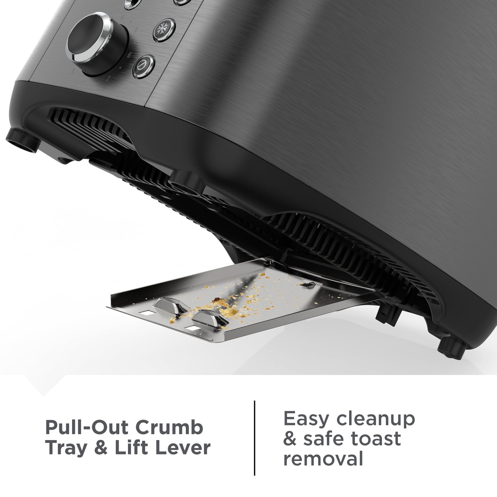 • Pull-out crumb tray: Keeps your counter clean with an easy slide mechanism