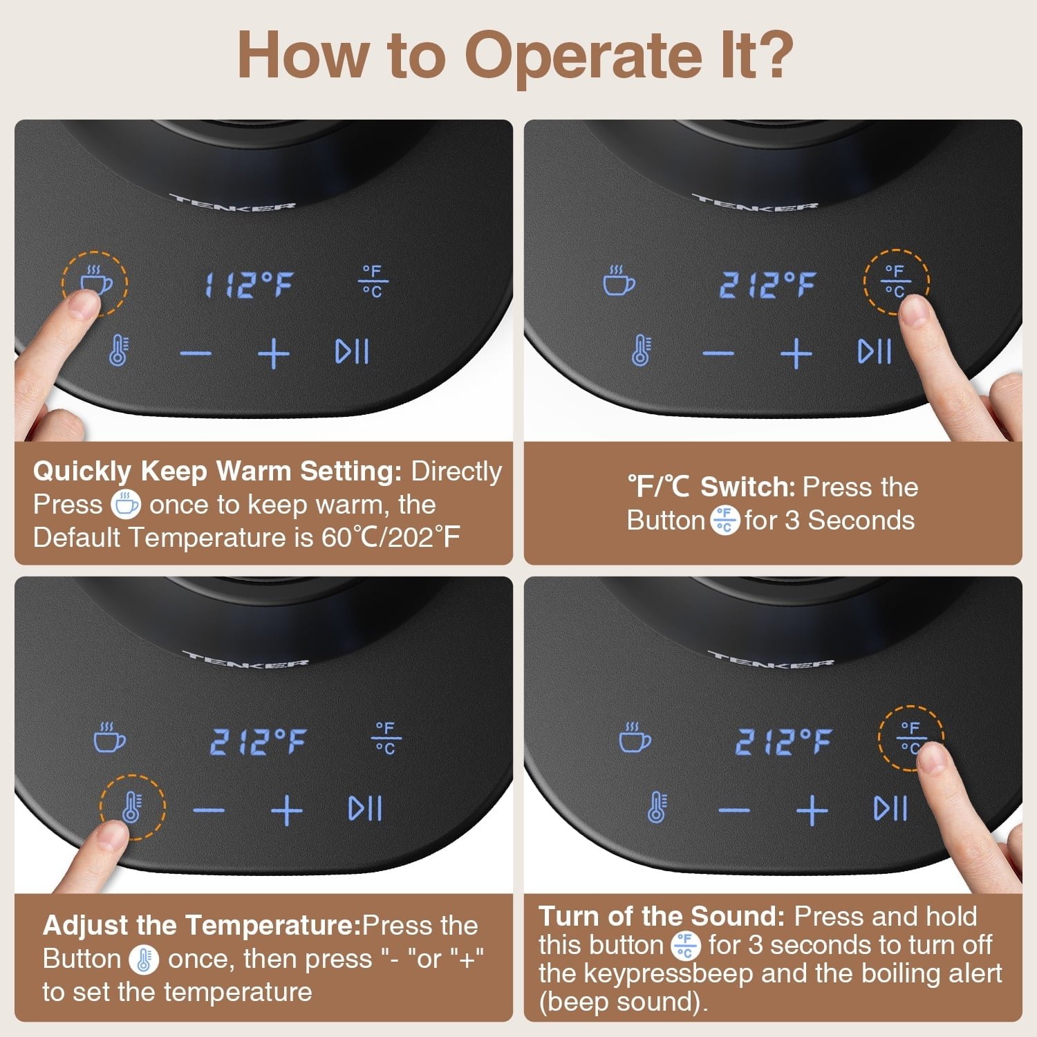 With the Gooseneck Kettle, you can say goodbye to your inefficient stovetop teapot and indulge in high-end tea making. With 6 one-touch presets for various pour-over teas and coffee, you have control over the temperature to help you make the perfect cup. The rapid-boil heating technology and Keep Warm function means hot water is always ready when you want it without having to wait and multi-colored LED lights indicate target temperatures at a glance. An alarm beeps to alert you when ready and the auto-shutoff and boil-dry protection allows for safe tea-making anytime, anywhere. Electric tea kettle does not contain any plastic parts inside including the inner lid and spout. It is made of 304 food-grade stainless steel with no dripping chemicals into the water. No need to worry about any plastic parts being in contact with boiling water. The ergonomic design allows the water kettle to be easily lifted off for pouring after the water is boiled. The cool touch and grip design of the handle can ergonomically give you a real and comfortable grip on your gooseneck electric kettle. Comes with elegant gift boxes which is a perfect gift for tea/coffee lovers.