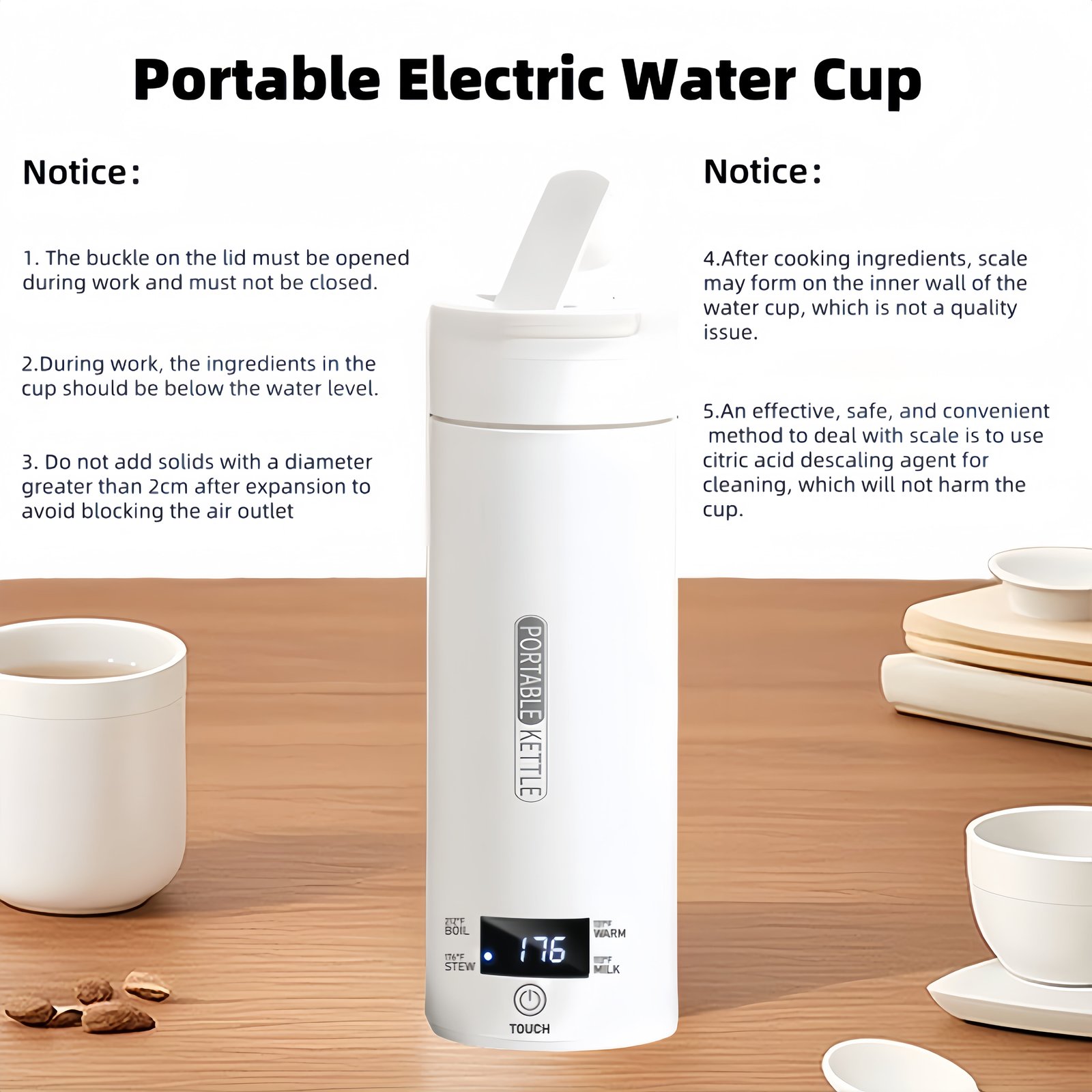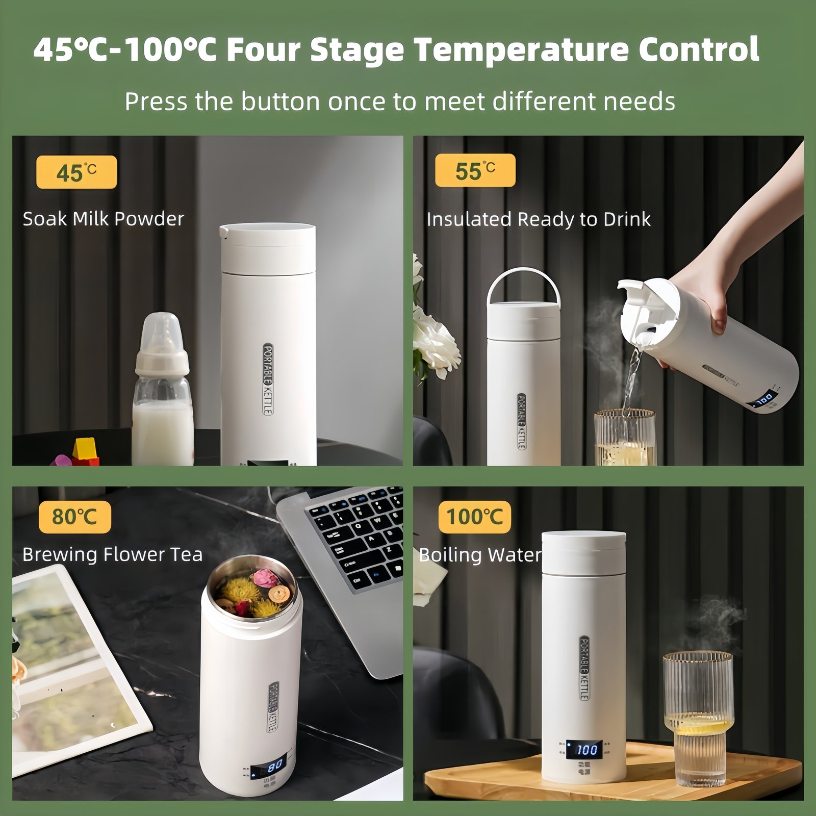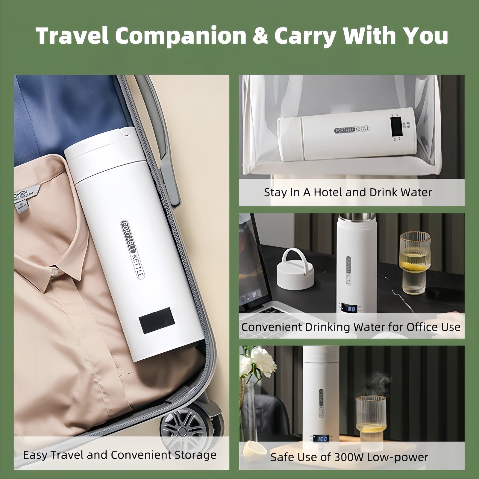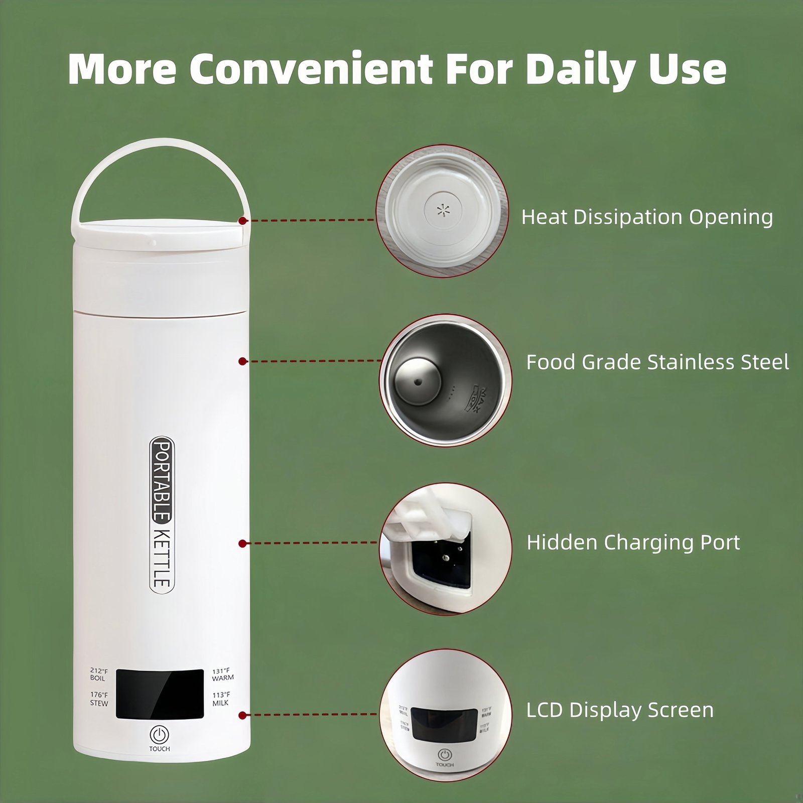Travel Electric Kettle,Portable Small Mini Tea Coffee Kettle Water Boiler,Constant Temperature Insulation Electric Cup,Liquid Crystal Display,Four Stage Temperature Regulation,White
