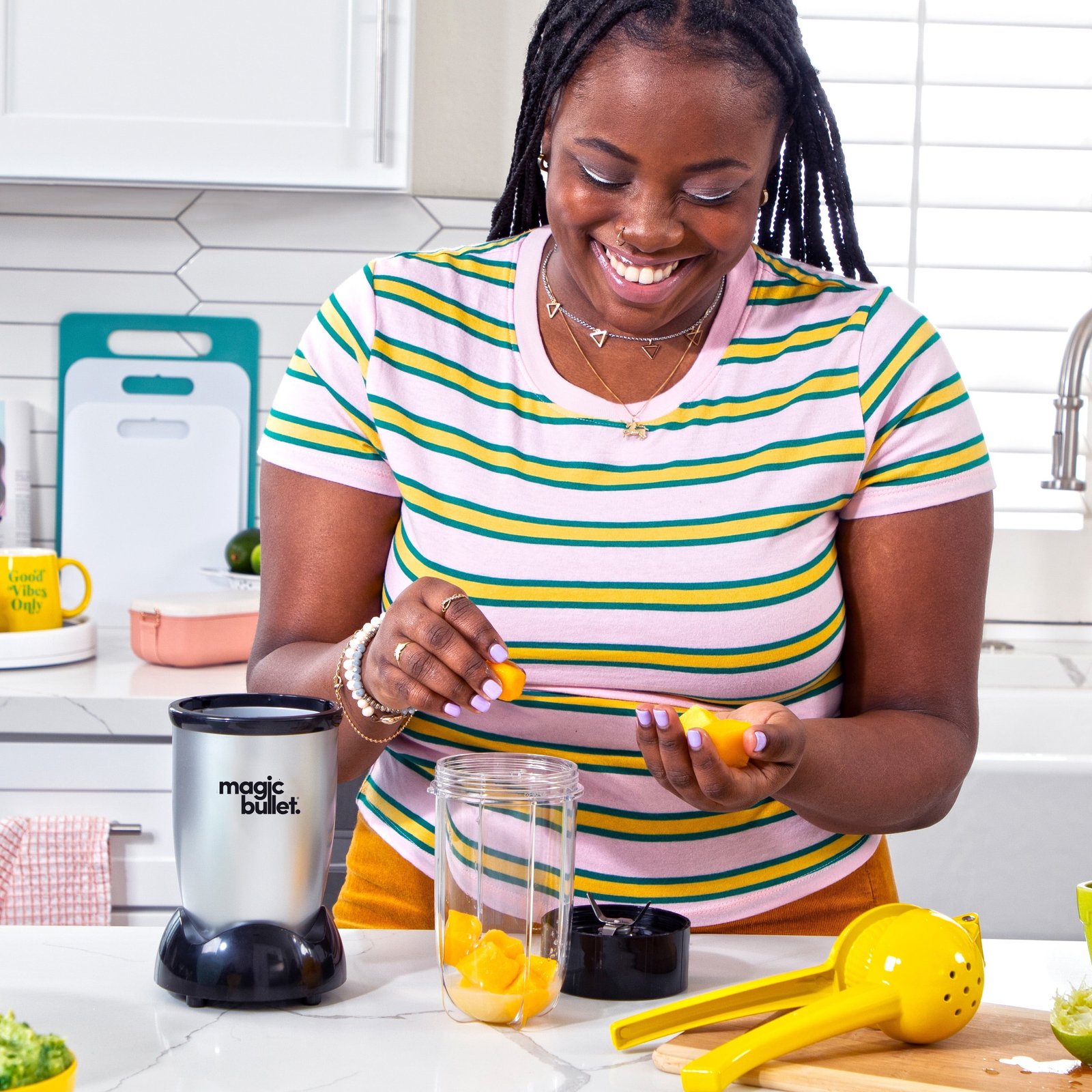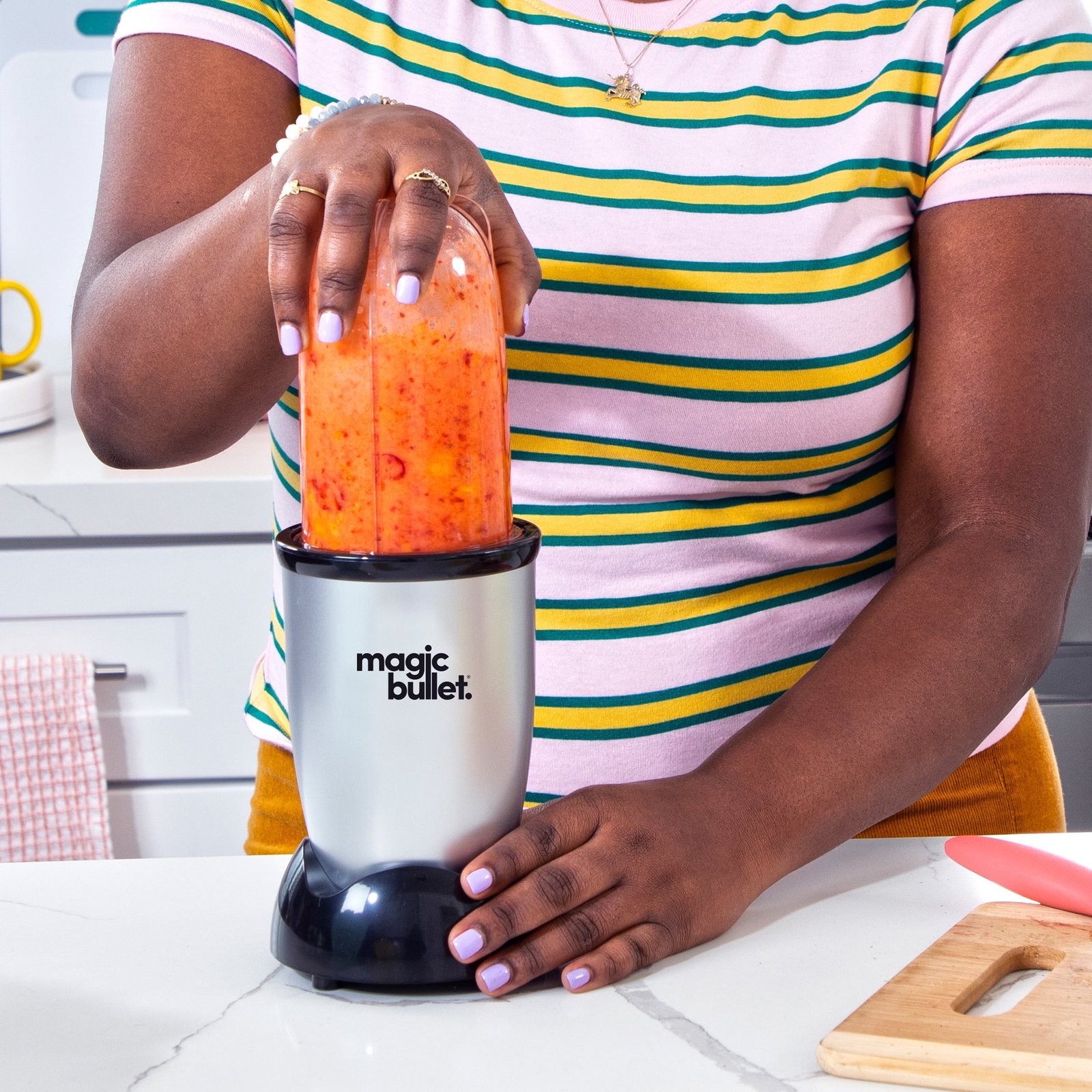 Ready to own the kitchen? The Magic Bullet whips up chunky salsas, creamy dips, refreshing smoothies, festive cocktails and much more in seconds. Not only is it fast and versatile, it’s also compact. This easy-to-use blender takes up way less countertop space than bulky full-size food processors and blenders, though it’s got the chops to tackle both of their jobs. It’s a world of treats in one little machine – chop, blend, and mix your way to tasty fun with the original kitchen magician.
