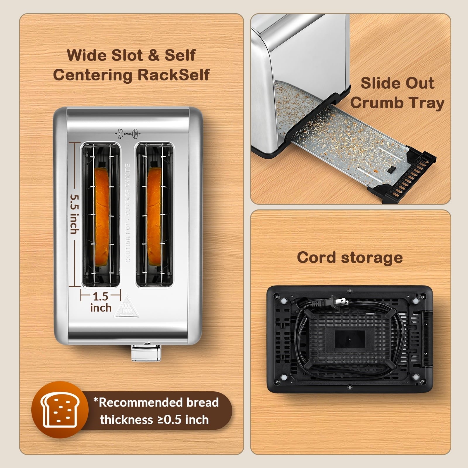 • Even Heating: Ensures consistent toasting with a well-tested structure and heating wires.