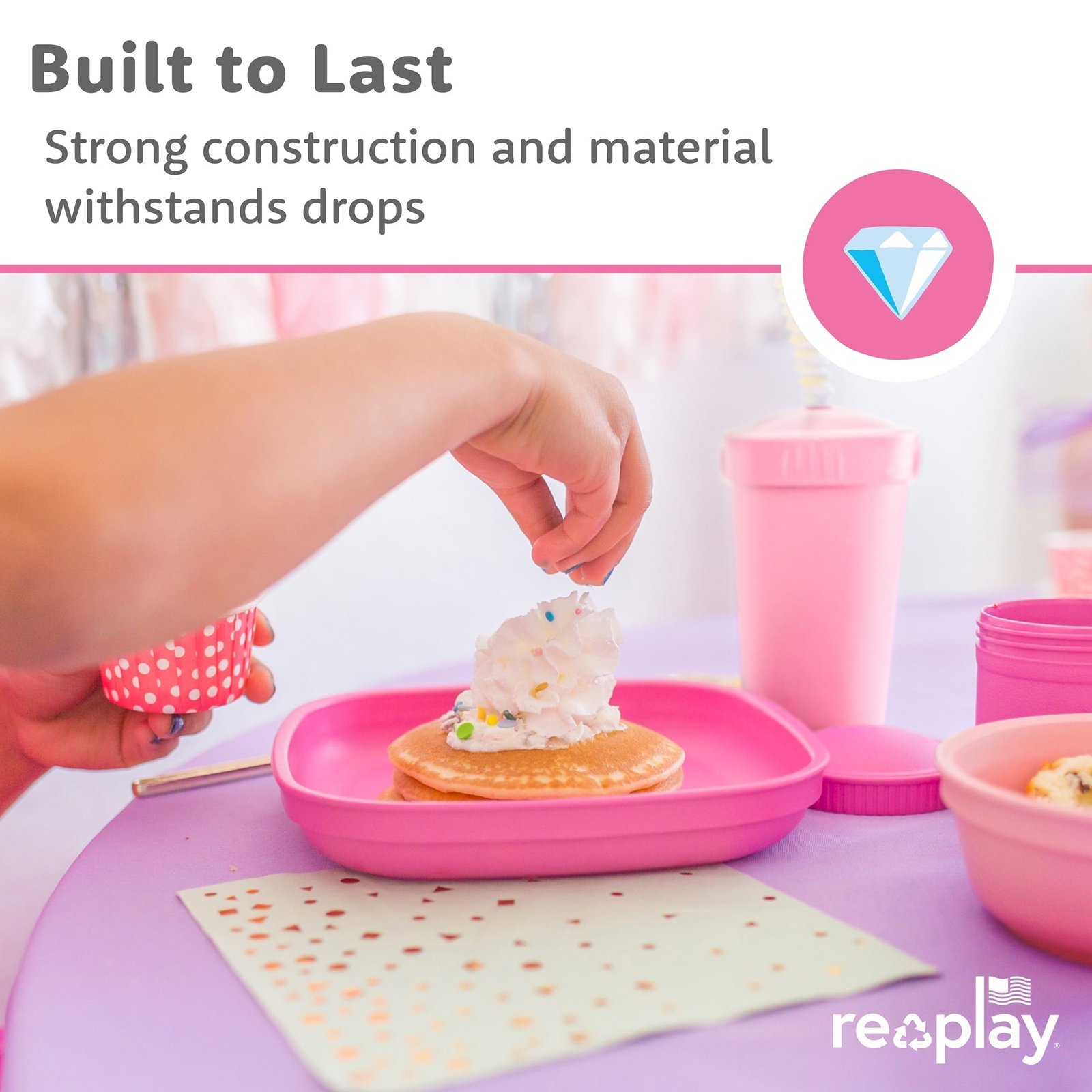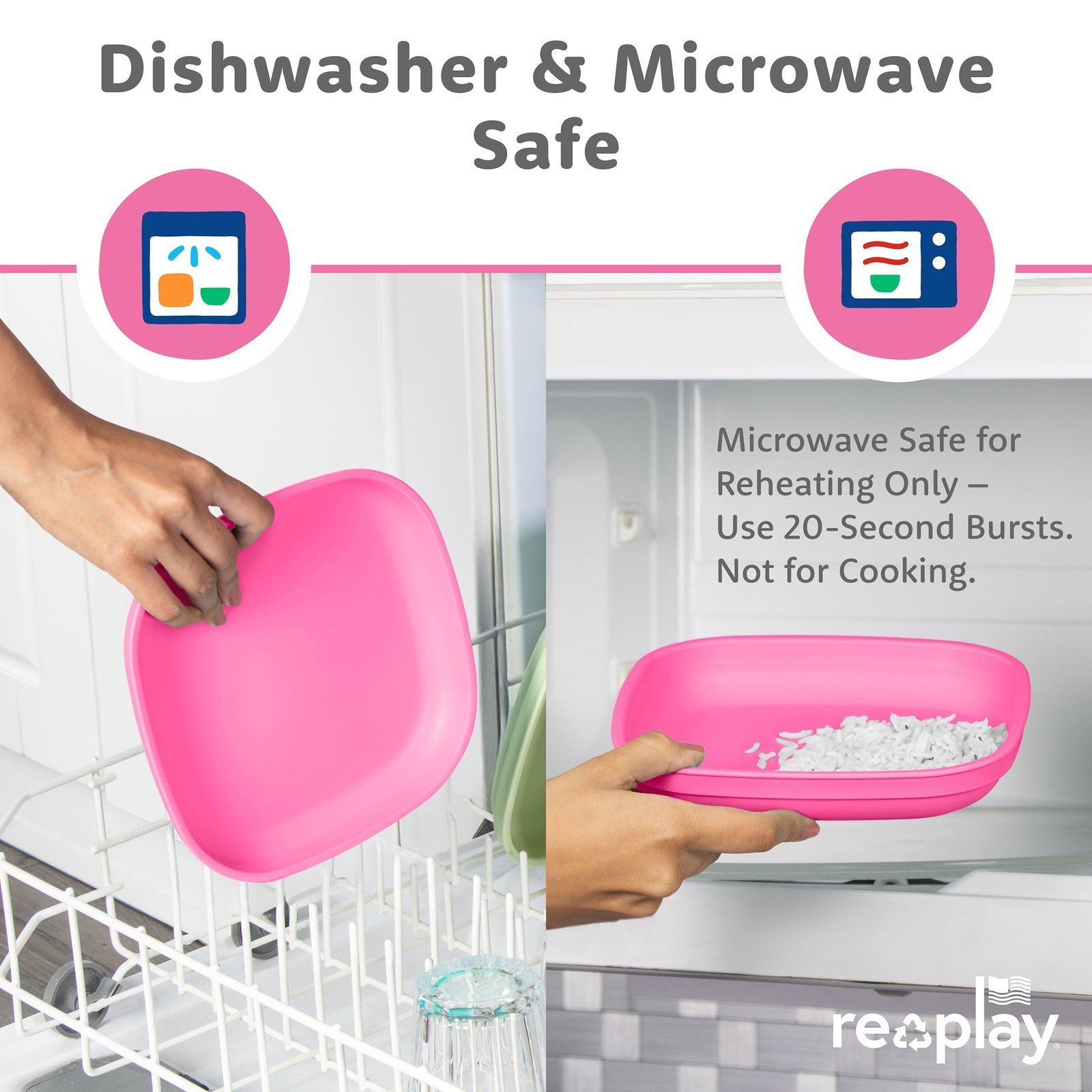 Colorful, Kid-Friendly Mealtime Made Easy. Re-Play’s 7-Inch Plates are designed with deep walls to reduce messes. Crafted from durable, recycled materials, these plates are built to last through everyday meals and fun outdoor events like picnics, barbecues, and birthday parties. Mix and match vibrant colors with Re-Play’s coordinating utensils, bowls, and cups to create a cheerful, organized tableware collection your family will love. Microwave-safe for short 20-second warm-ups (not for cooking)