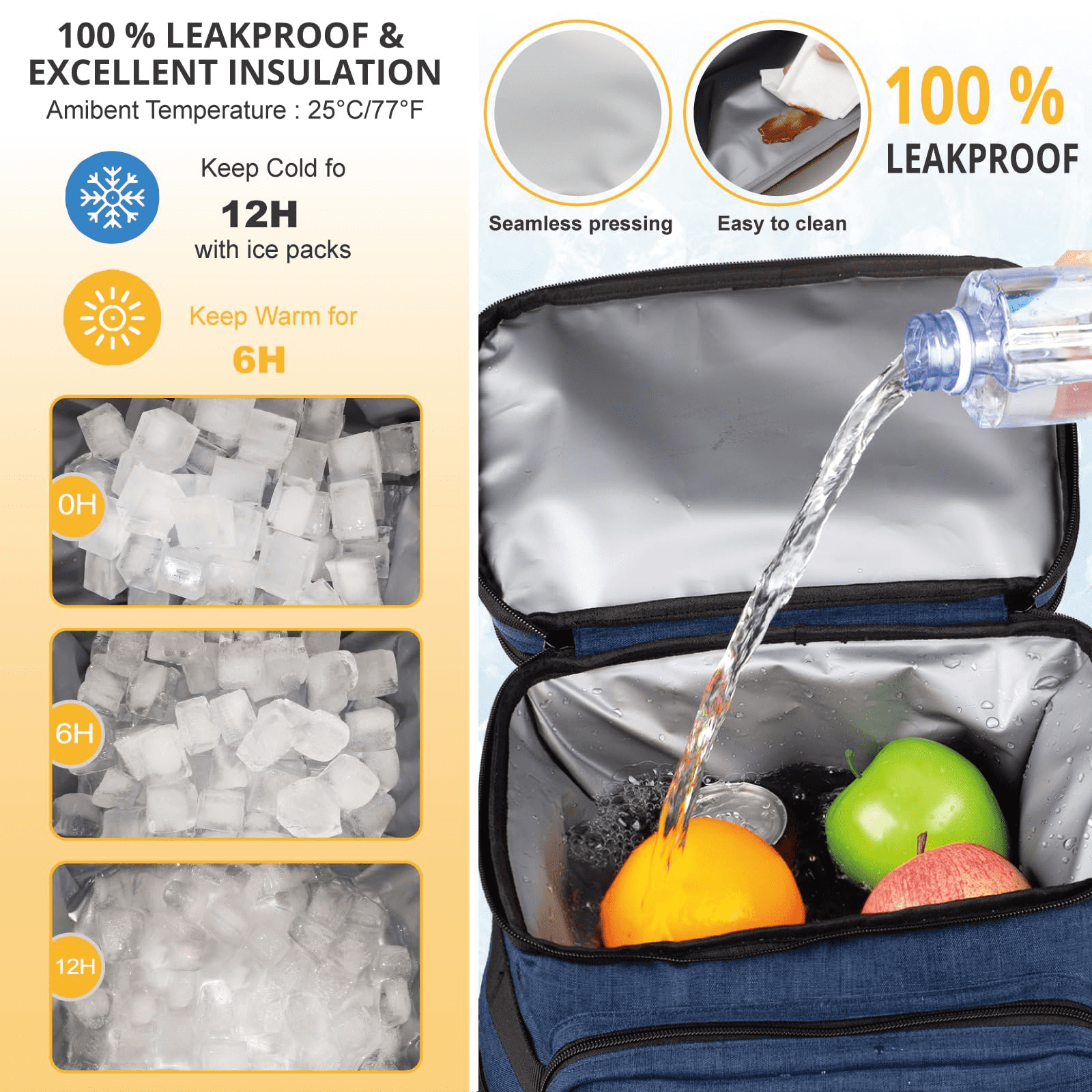 Long-lasting Insulation Performance:Constructed with 10mm high-density insulated foam interiors, our cooler backpack maintains your food and drinks cold or hot for over 12 hours. Enjoy refreshing cold beverages and warm meals even after a long hike.