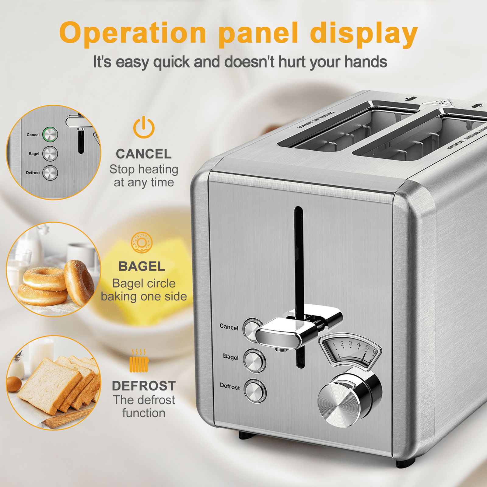Convenient Functions: Features like Defrost, Bagel, and Cancel functions provide flexibility to toast your bread just the way you like it.